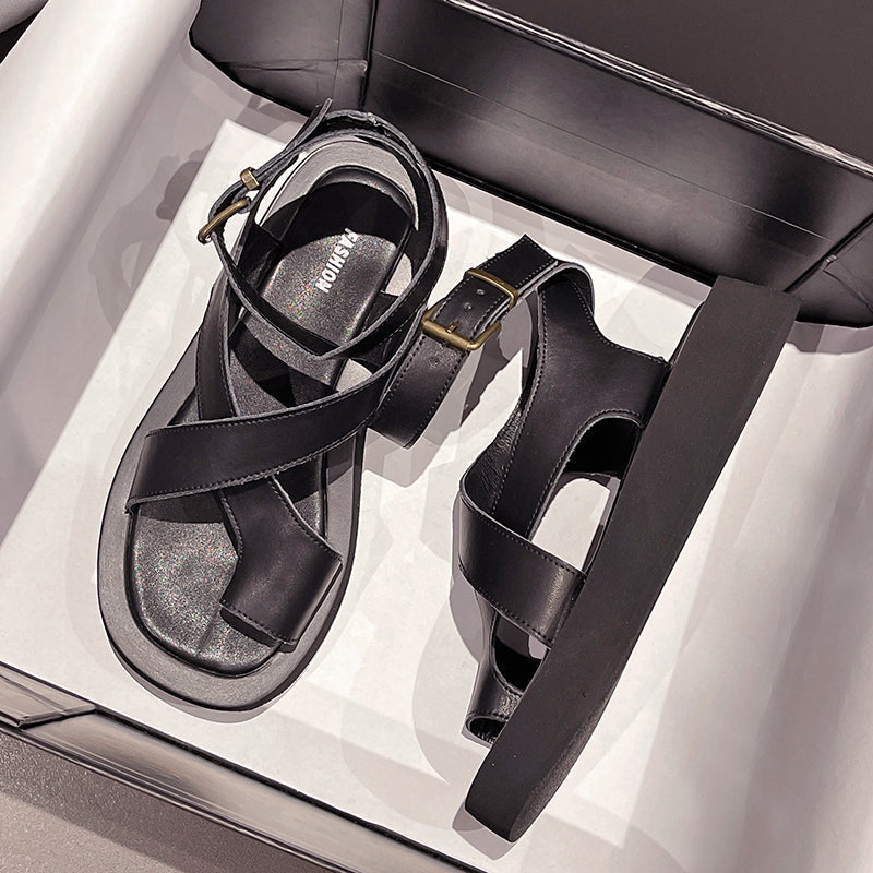 Trois styles:Les couleurs classiques noir, Marron et Blanc sont disponibles, style simple, élégant et à la mode. Les sandales sont conçues avec des boucles de réglage de la cheville, qui conviennent mieux aux vêtements de plein air.