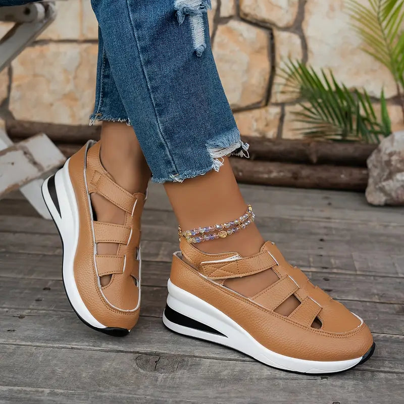 La semelle orthopédique soutient la voûte plantaire de façon optimale, réduisant significativement la fatigue, même après des heures debout. Que tu sois en pleine journée de travail ou en promenade au coucher du soleil, tu restes légère, stable et détendue.